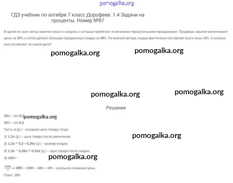 Готовые ответы - Алгебра 7 класс Дорофеев Г.В. - упражнение 87
