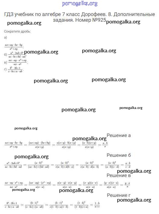 Готовые ответы - Алгебра 7 класс Дорофеев Г.В. - упражнение 925
