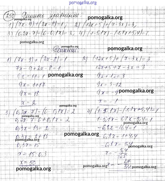 Готовые ответы - Алгебра 7 класс Колягин Ю.М. - упражнение 250