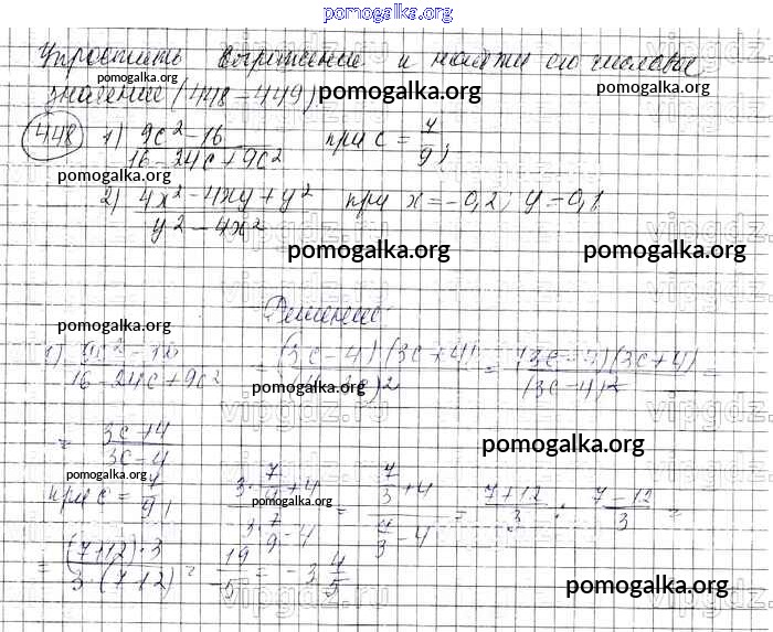 Готовые ответы - Алгебра 7 класс Колягин Ю.М. - упражнение 448