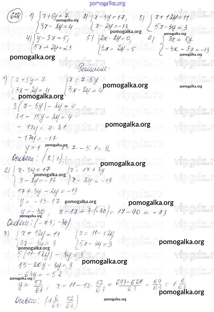 Готовые ответы - Алгебра 7 класс Колягин Ю.М. - упражнение 628
