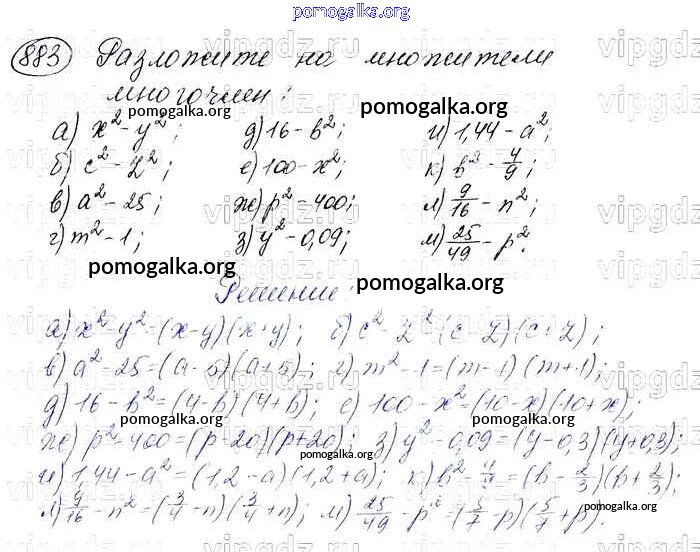 Готовые ответы - Алгебра 7 класс Макарычев Ю.Н. - упражнение 883