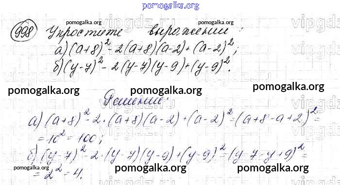 Готовые ответы - Алгебра 7 класс Макарычев Ю.Н. - упражнение 998