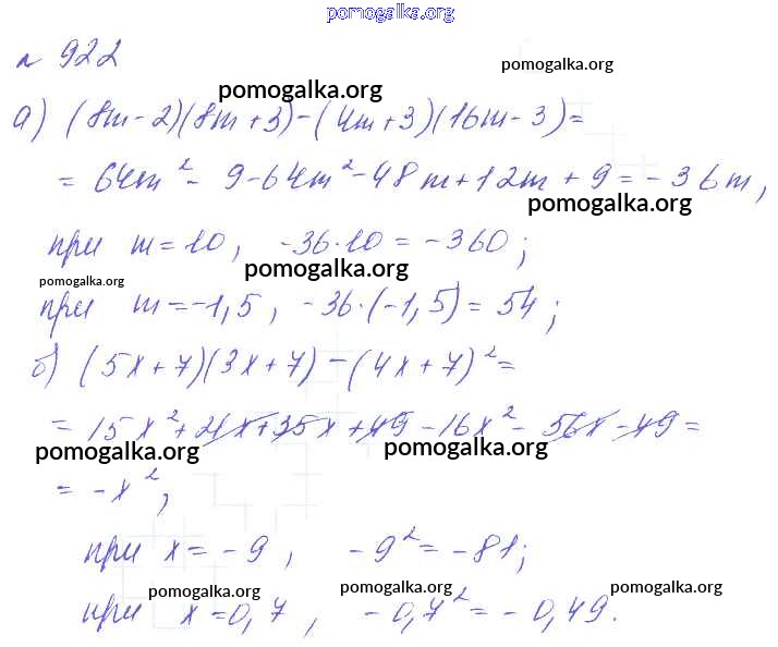 Готовые ответы - Алгебра 7 класс Макарычев Ю.Н. - упражнение 922