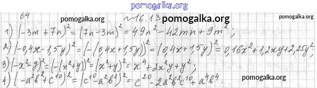 §16. Квадрат суммы и квадрат разности двух выражений. Квадрат суммы нескольких выражений. №1-53