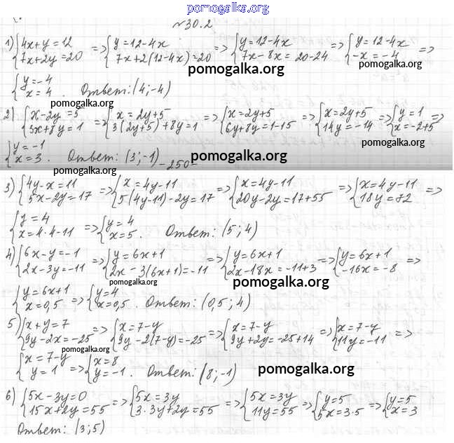 §30. Решение систем линейных уравнений методом подстановки. №1-10
