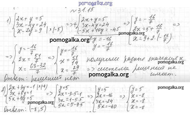 §31. Решение систем линейных уравнений методом сложения. №1-30