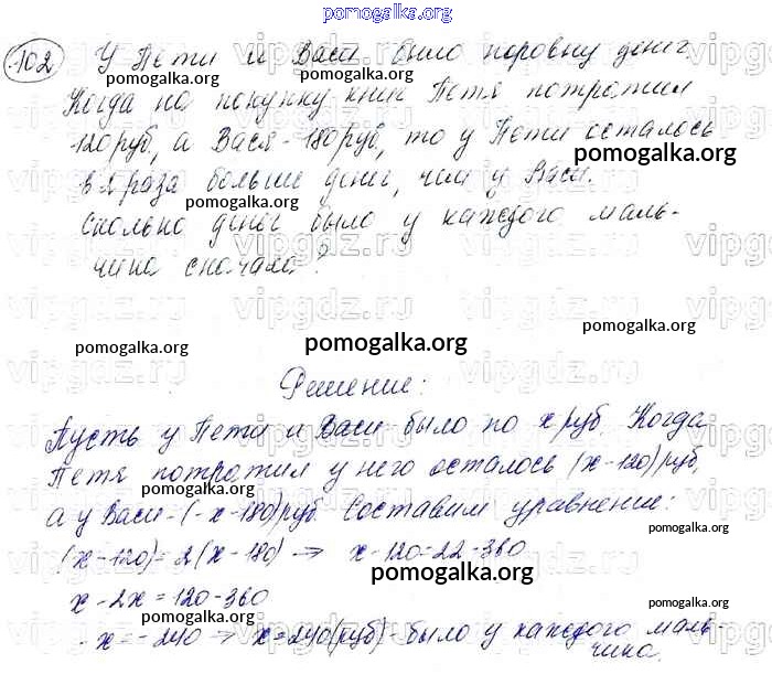 Готовые ответы - Алгебра 7 класс Мерзляк А.Г. - упражнение 102