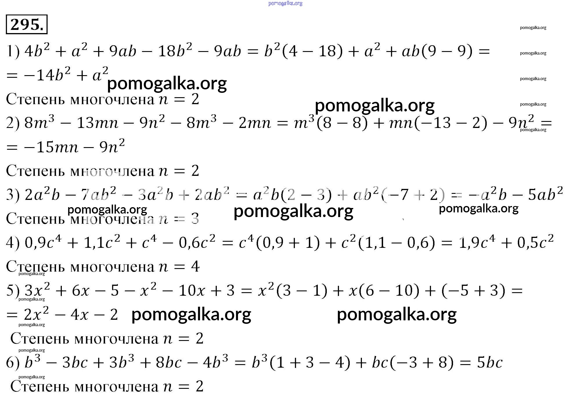 Готовые ответы - Алгебра 7 класс Мерзляк А.Г. - упражнение 295