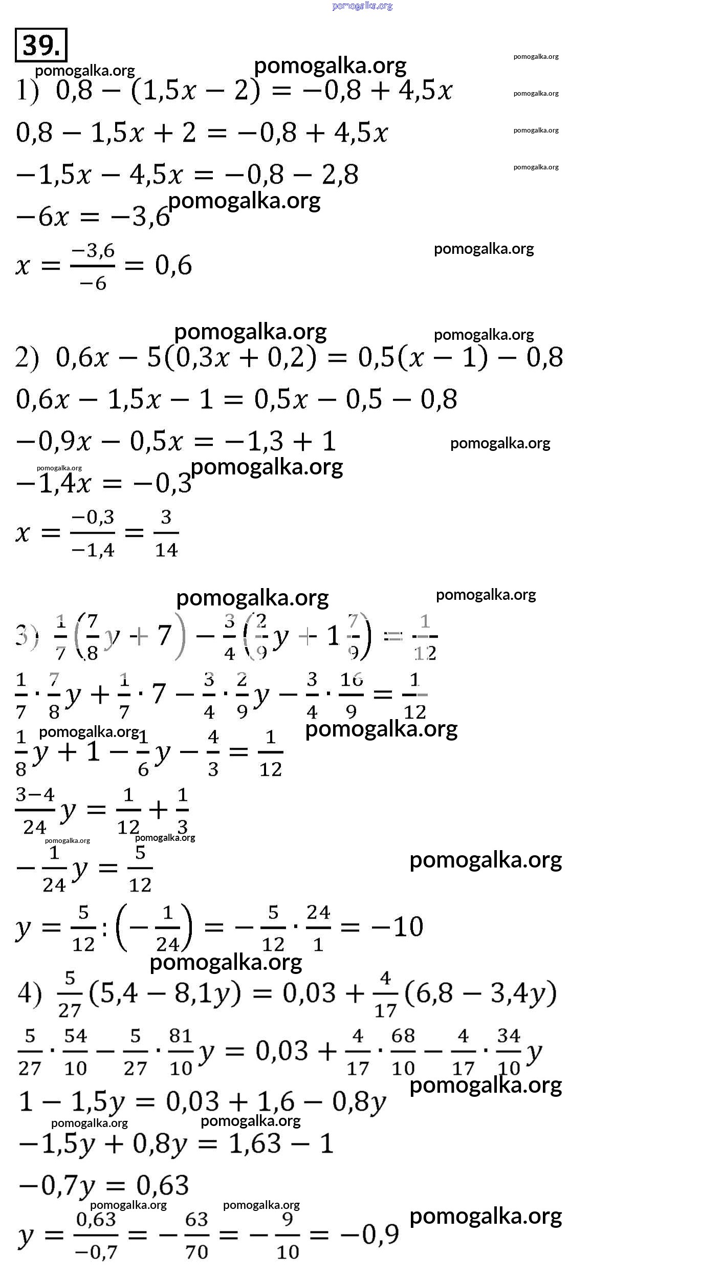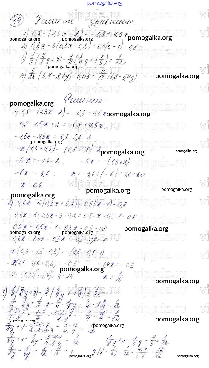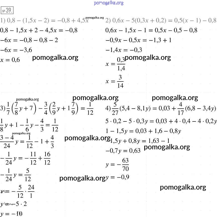 Готовые ответы - Алгебра 7 класс Мерзляк А.Г. - упражнение 39