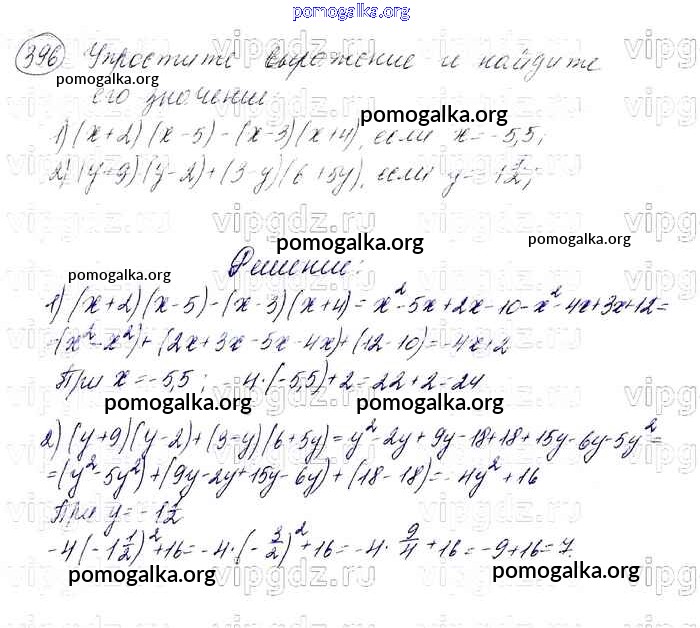 Готовые ответы - Алгебра 7 класс Мерзляк А.Г. - упражнение 396