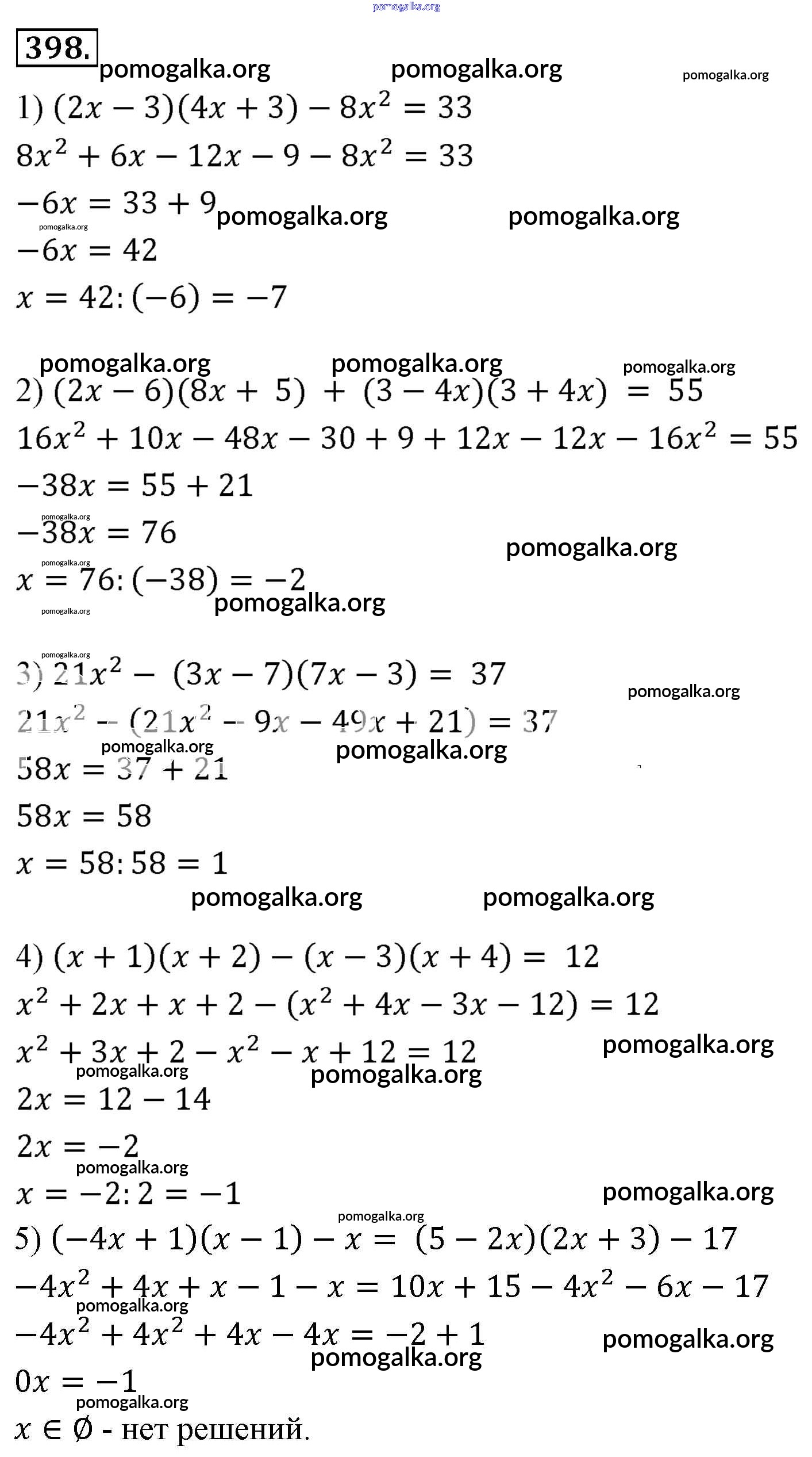 Готовые ответы - Алгебра 7 класс Мерзляк А.Г. - упражнение 398