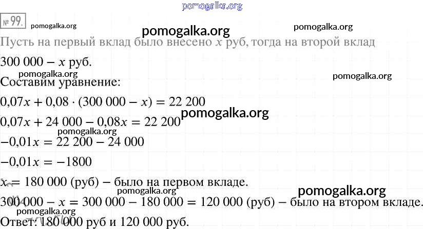 Готовые ответы - Алгебра 7 класс Мерзляк А.Г. - упражнение 99
