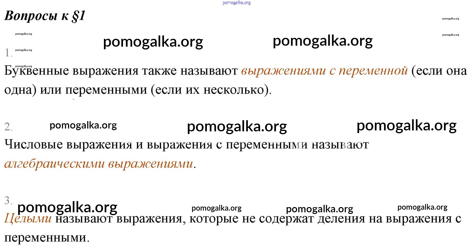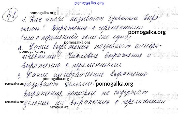 Готовые ответы - Алгебра 7 класс Мерзляк А.Г. - вопрос к параграфу 1