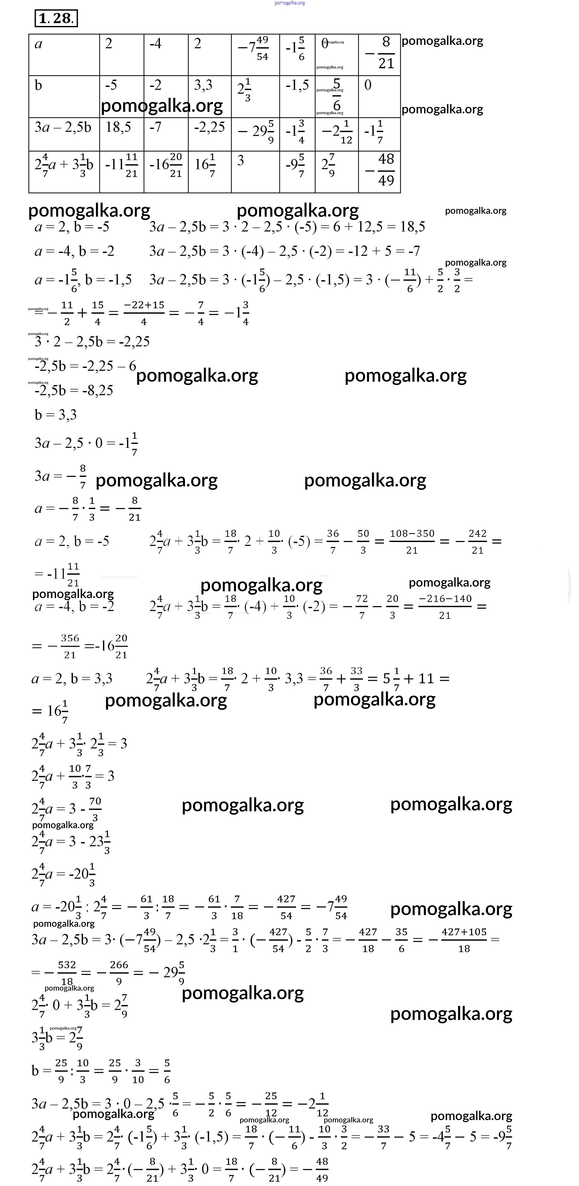 Готовые ответы - Алгебра 7 класс Мордкович А.Г. - §1 1.28