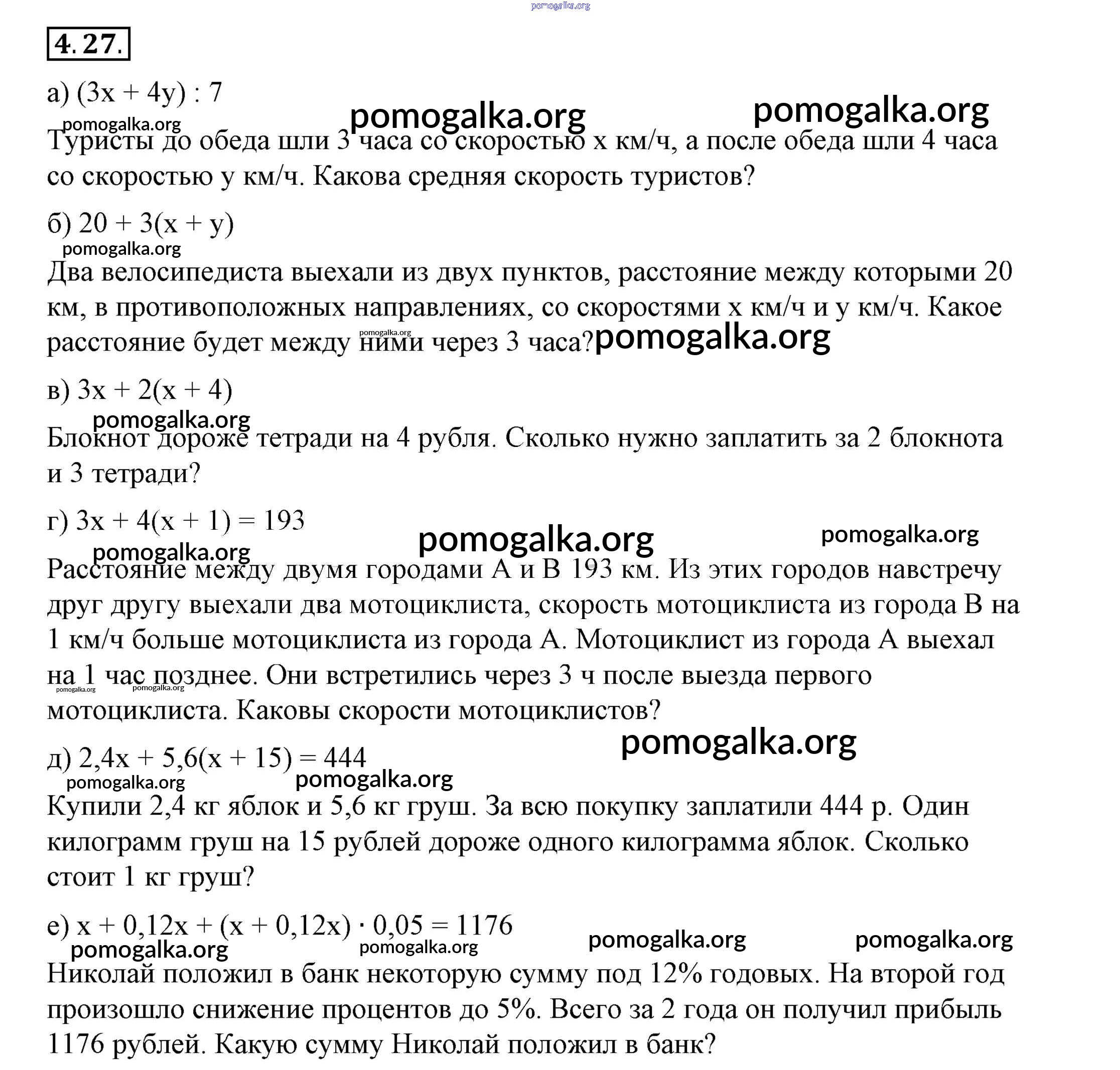 Готовые ответы - Алгебра 7 класс Мордкович А.Г. - §4 4.27