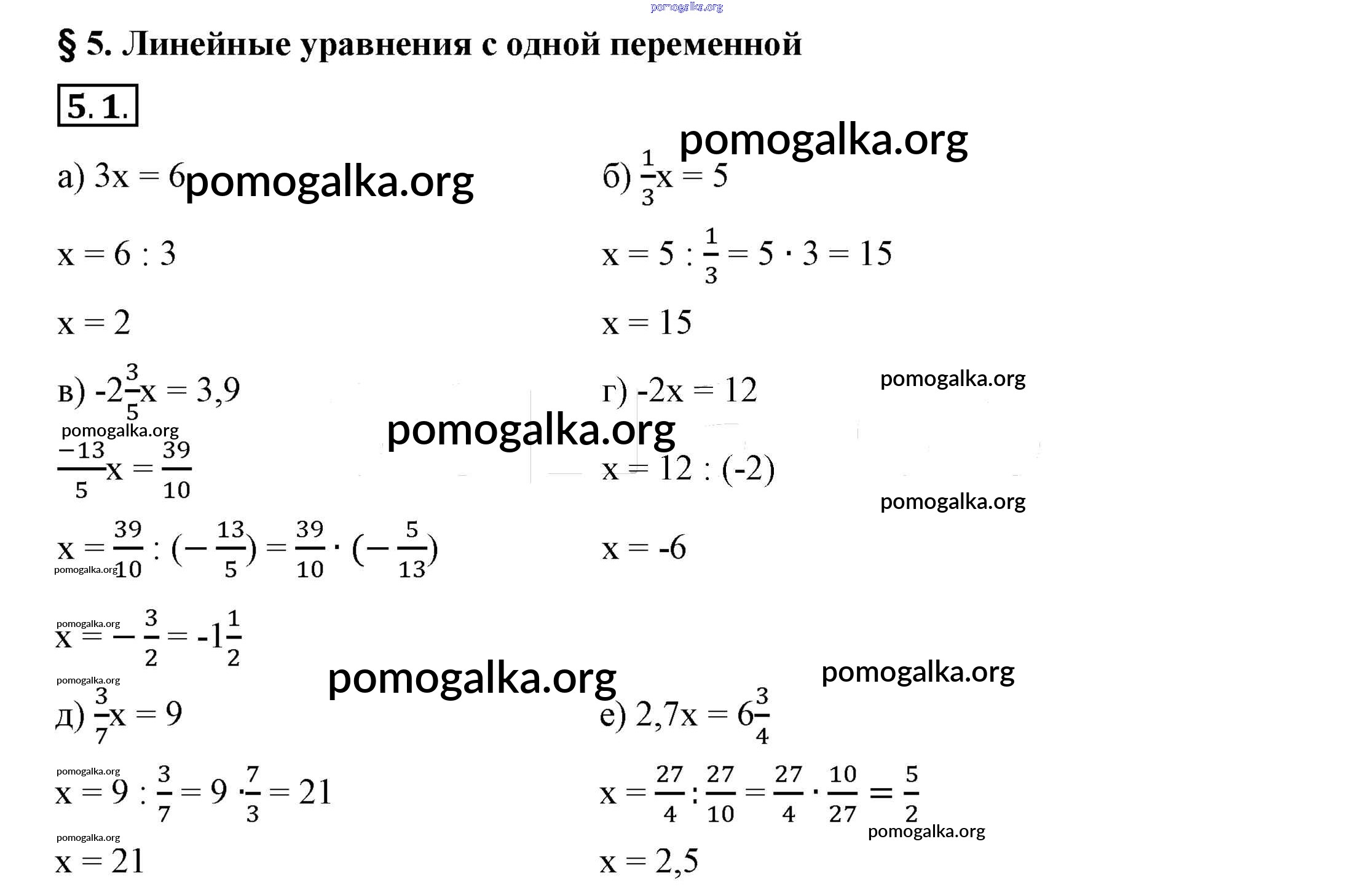 §5. Линейные уравнения с одной переменной. № 1-24