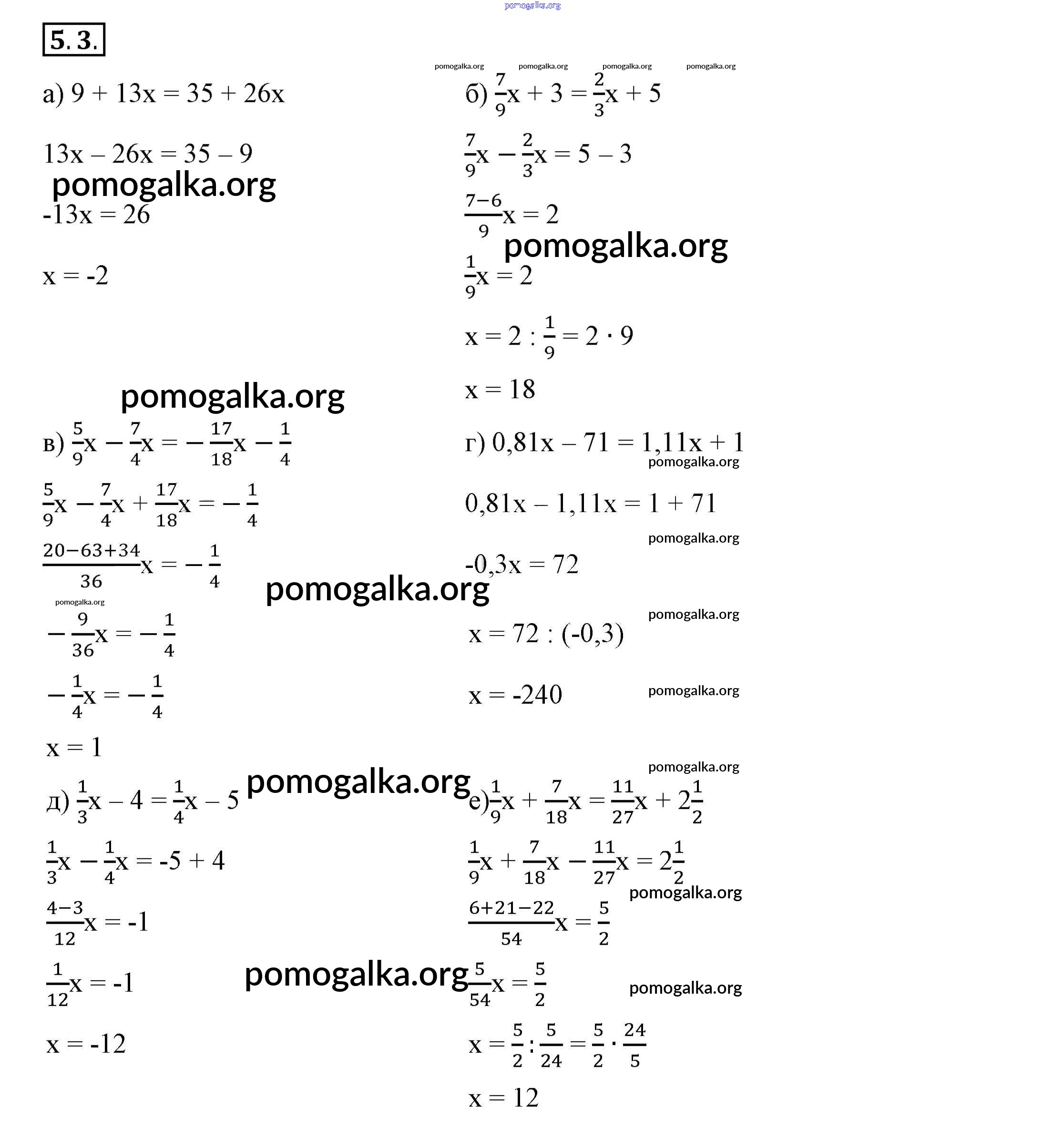 §5. Линейные уравнения с одной переменной. № 1-24