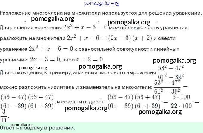 Глава 7. Разложение многочленов на множители. §30-36
