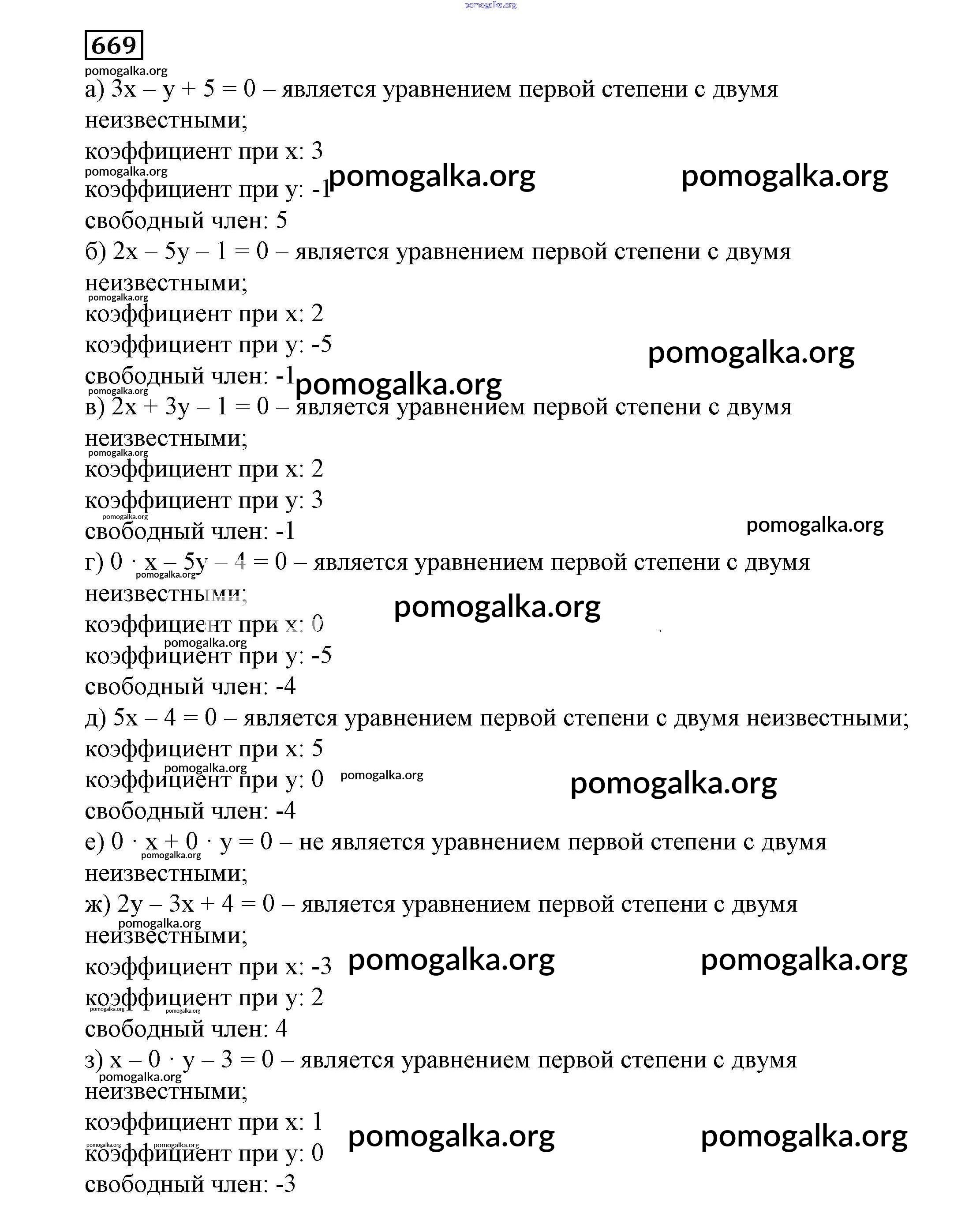 Готовые ответы - Алгебра 7 класс Никольский С.М. - упражнение 669