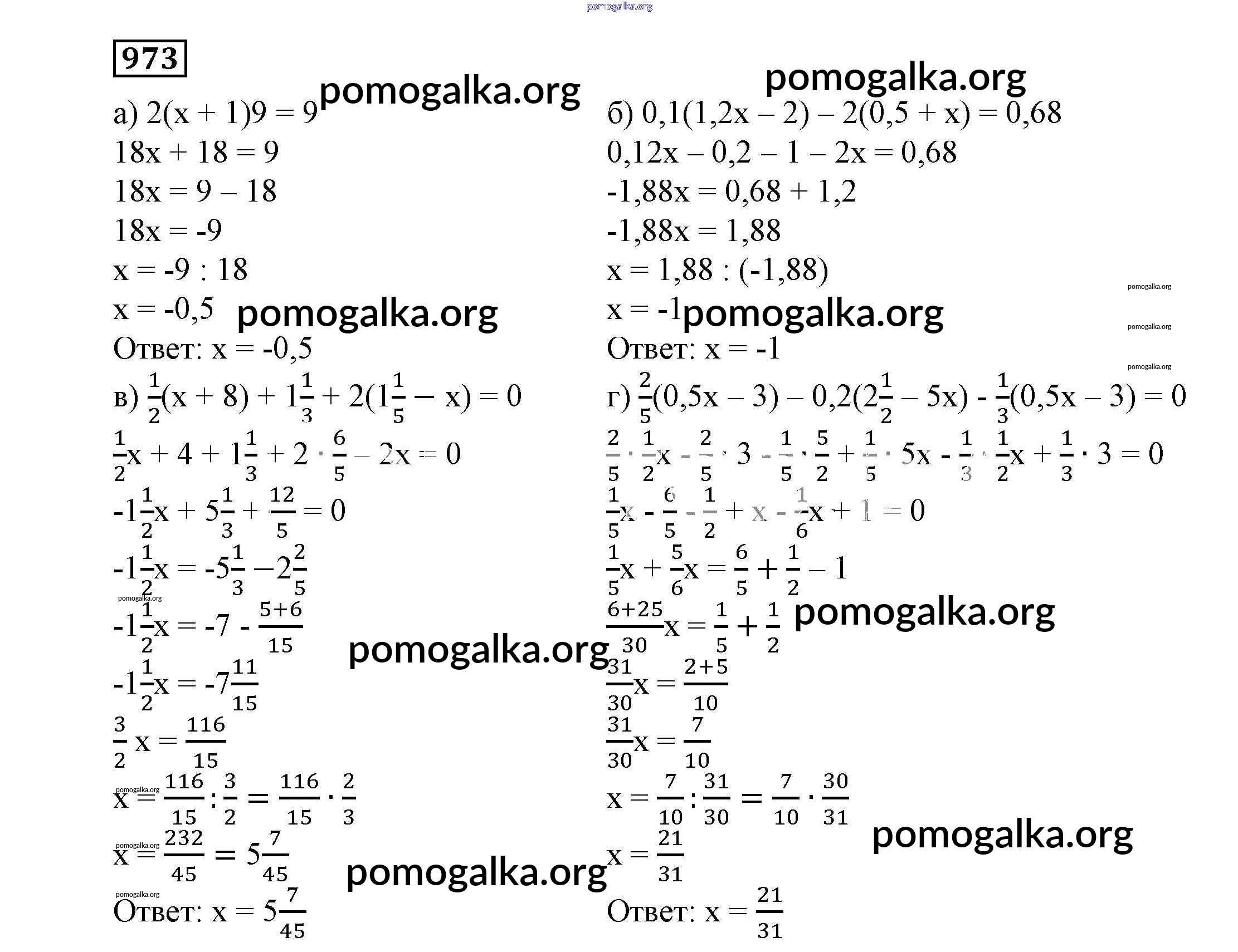 Готовые ответы - Алгебра 7 класс Никольский С.М. - упражнение 973