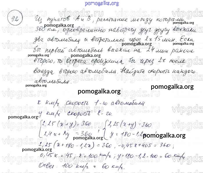 Готовые ответы - Алгебра 7 класс задачник (базовый уровень) Мордкович А.Г. Часть 2 - глава 9. итоговое повторение 92