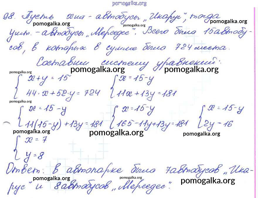 Готовые ответы - Алгебра 7 класс задачник (базовый уровень) Мордкович А.Г. Часть 2 - глава 9. итоговое повторение 98