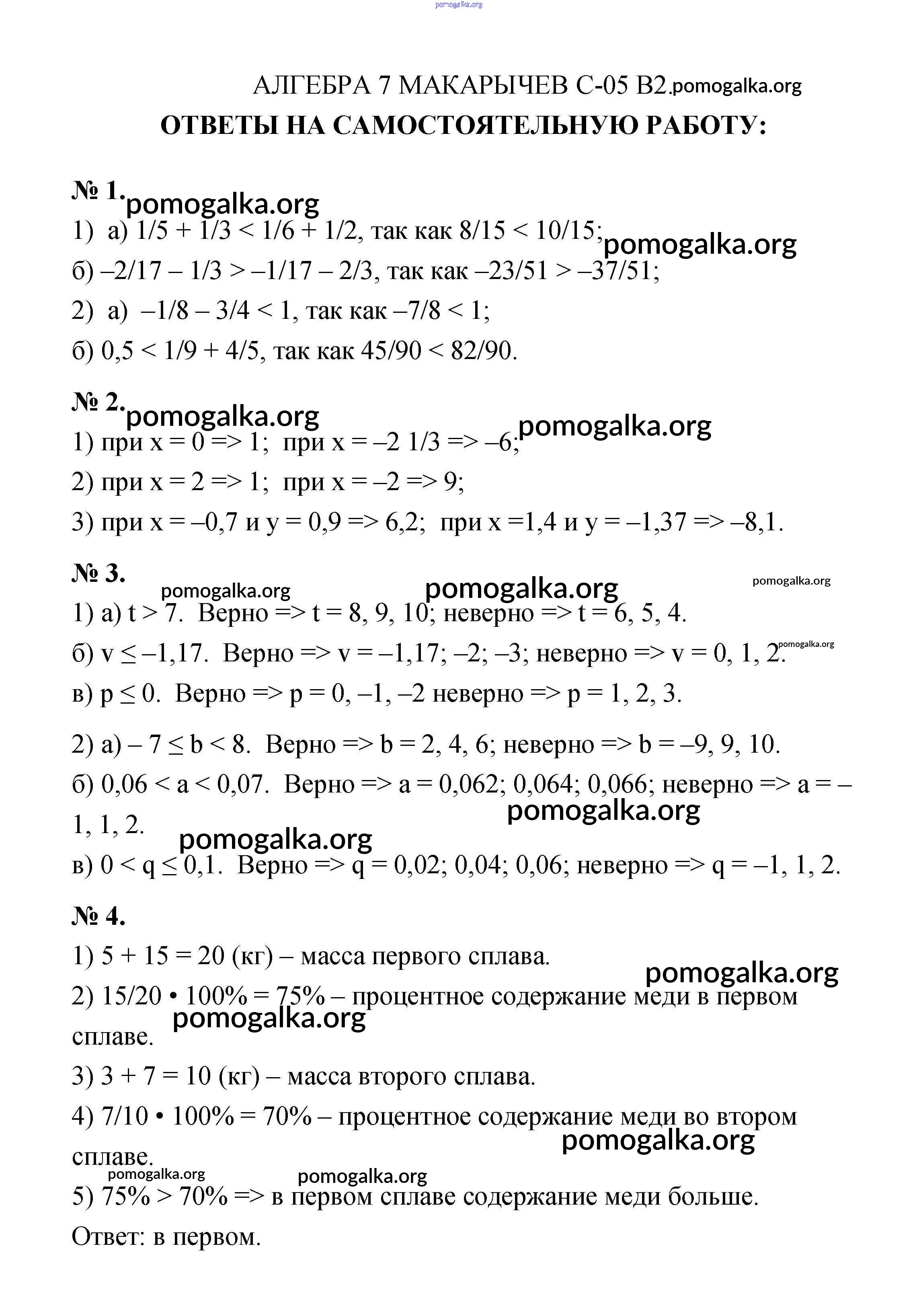 Готовые ответы - Алгебра 7 класс дидактические материалы Звавич Л.И. - вариант 2 самостоятельная работа С-5. Сравнение значений выражений