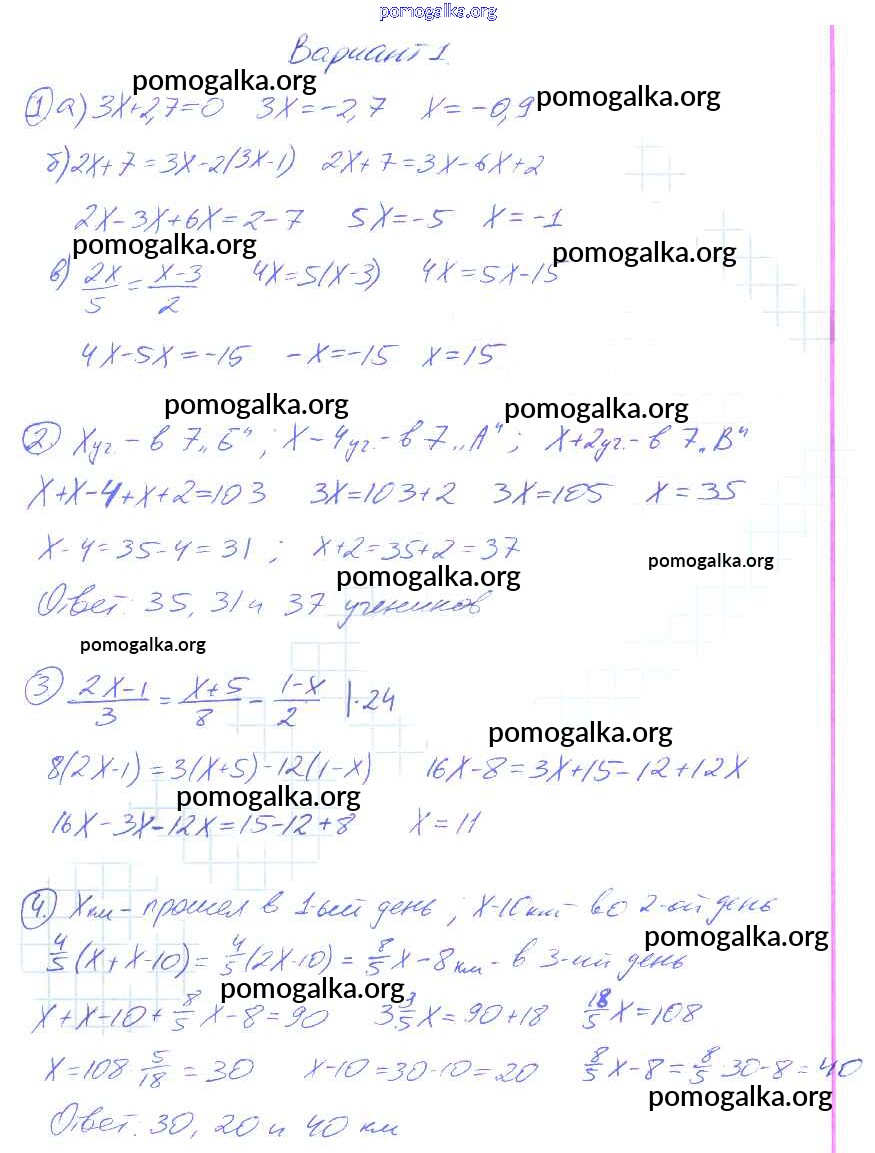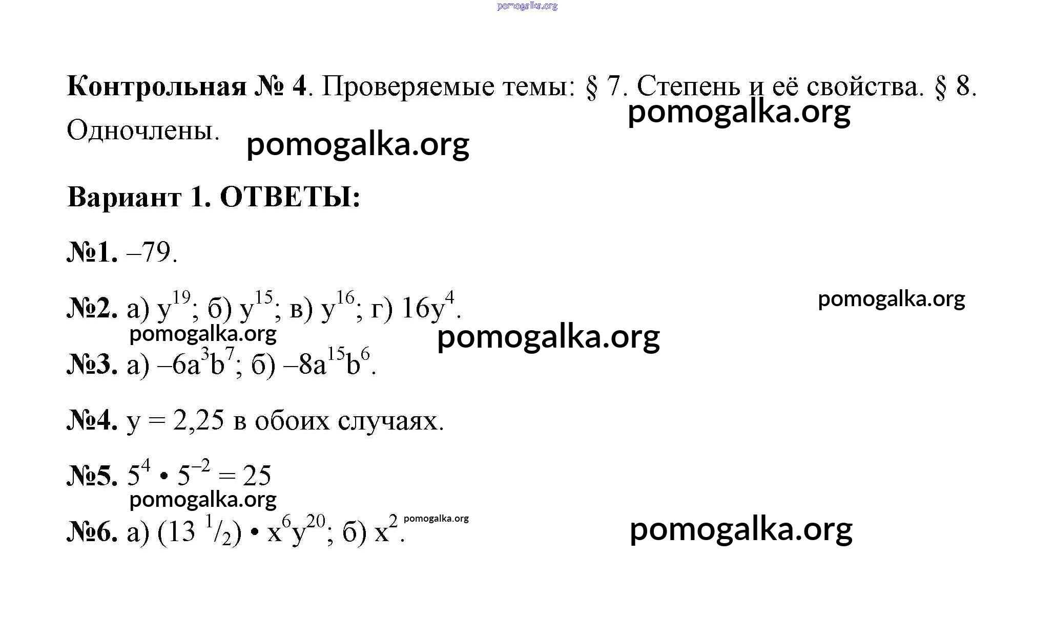 Готовые ответы - Алгебра 7 класс дидактические материалы Звавич Л.И. - вариант 1 контрольная работа k-2a
