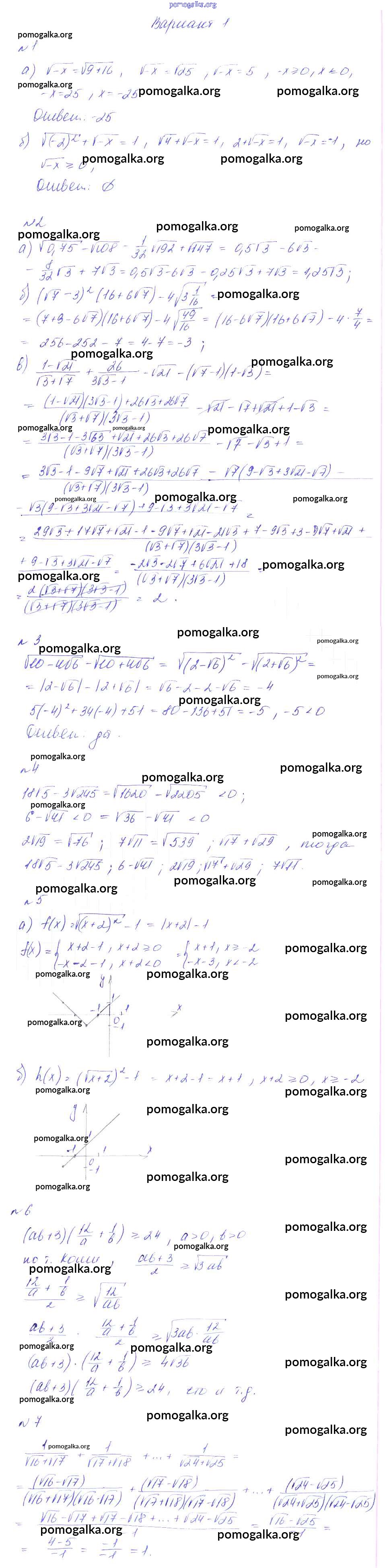 Готовые ответы - Алгебра 8 класс Дидактические материалы Феоктистов - кр-3 контрольная работа вариант 1
