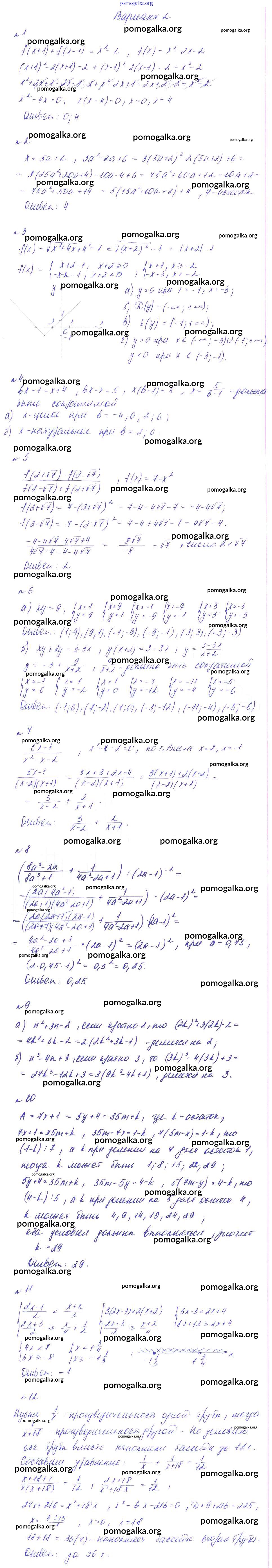Готовые ответы - Алгебра 8 класс Дидактические материалы Феоктистов - итоговая кр контрольная работа вариант 2