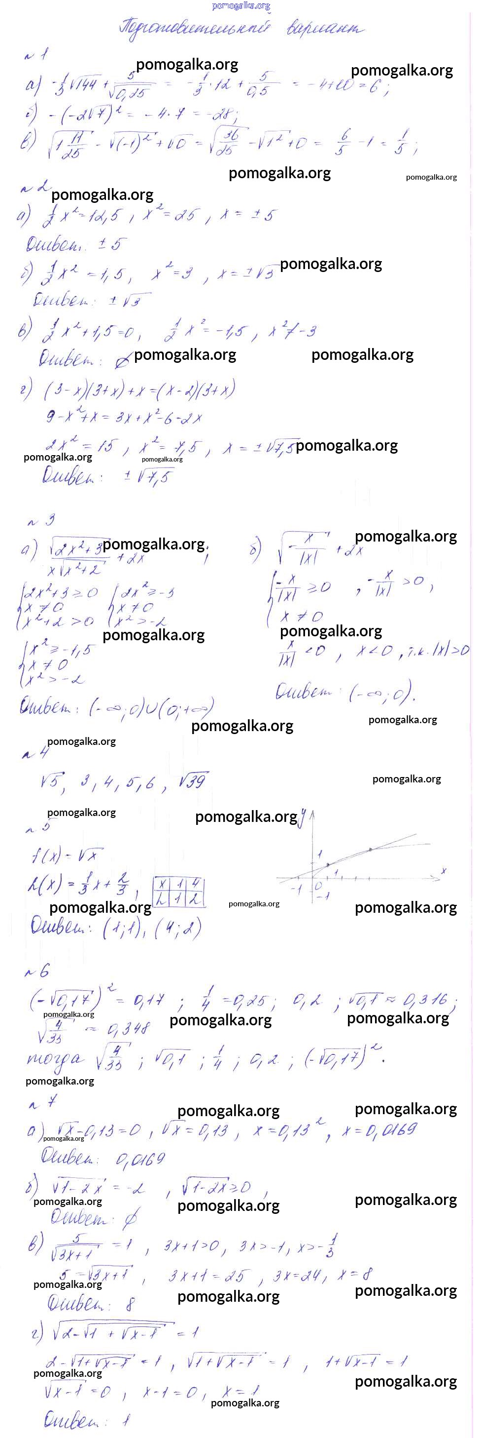 Готовые ответы - Алгебра 8 класс Дидактические материалы Феоктистов - ср-10 самостоятельная работа подготовительный вариант