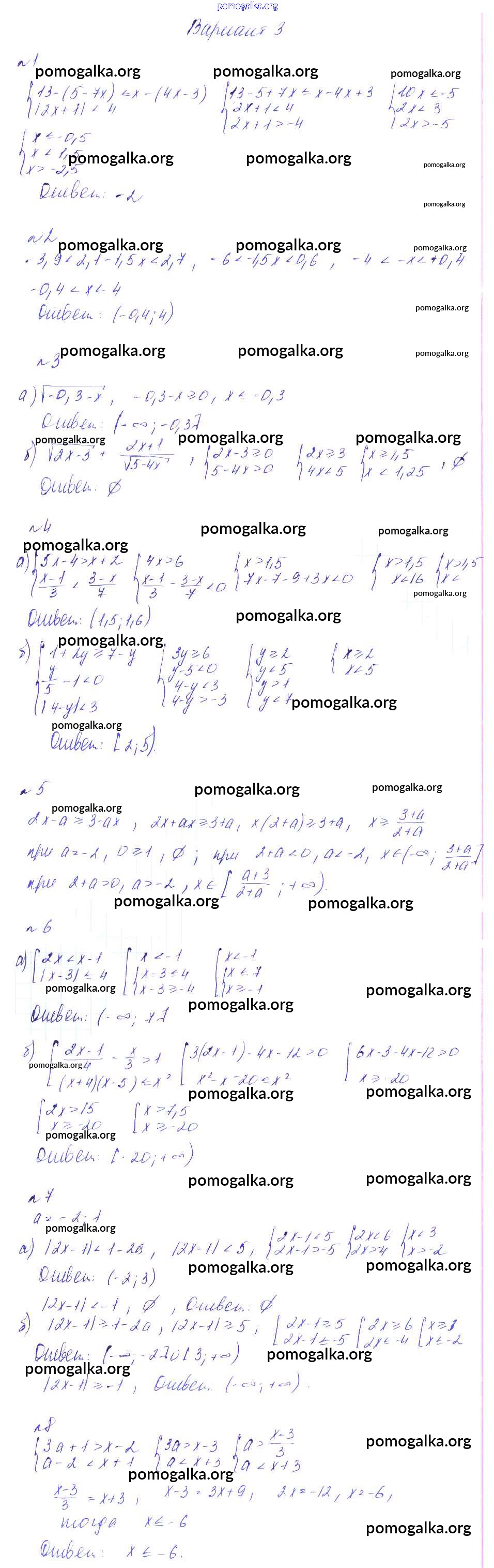 Готовые ответы - Алгебра 8 класс Дидактические материалы Феоктистов - ср-20 самостоятельная работа вариант 3