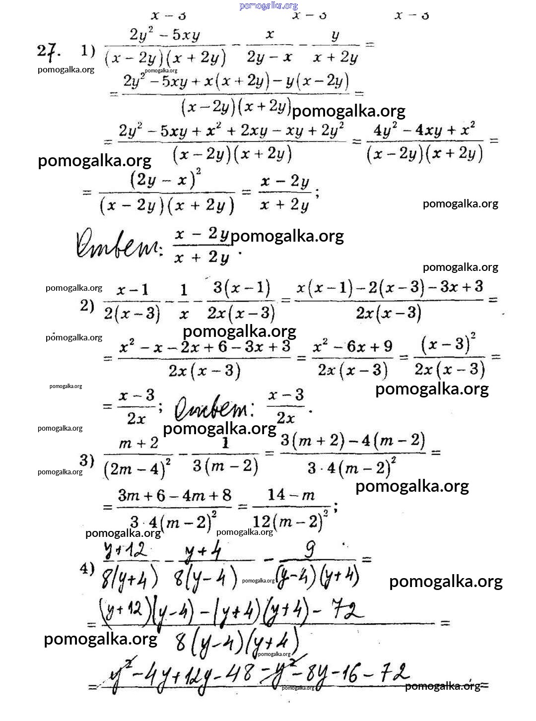 Готовые ответы - Алгебра 8 класс Дидактические материалы Мерзляк А.Г. - вариант 2 упражнение 27