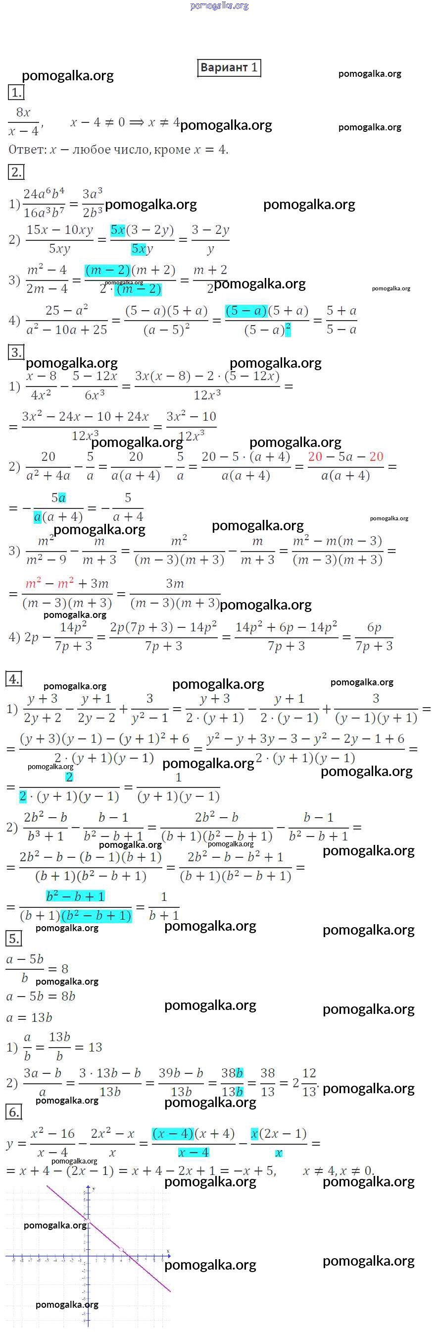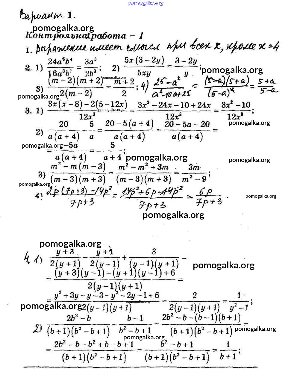 Готовые ответы - Алгебра 8 класс Дидактические материалы Мерзляк А.Г. - кр-1 контрольная работа вариант 1