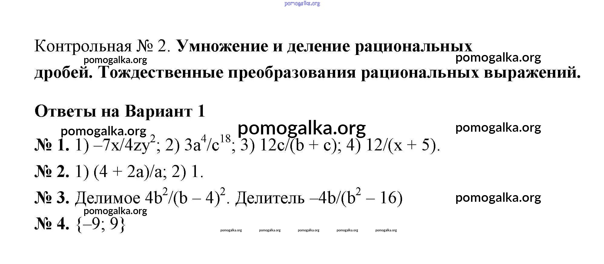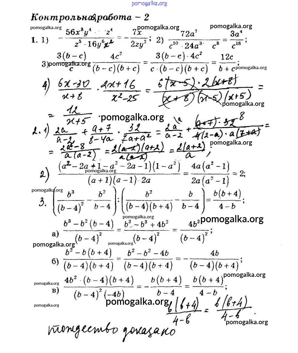 КР-2. Умножение и деление рациональных дробей. Тождественные преобразования рациональных дробей