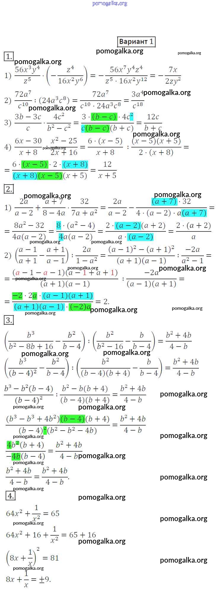 Готовые ответы - Алгебра 8 класс Дидактические материалы Мерзляк А.Г. - кр-2 контрольная работа вариант 1