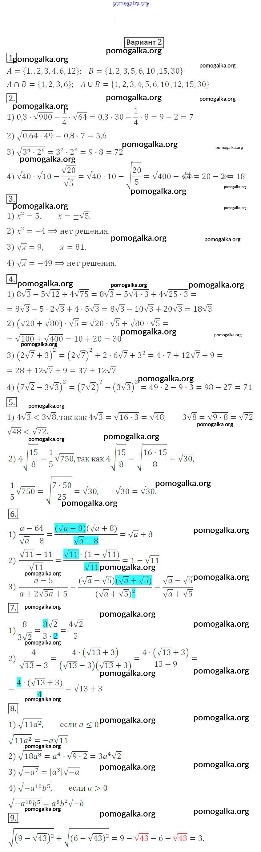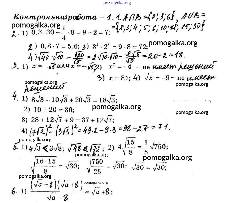 Готовые ответы - Алгебра 8 класс Дидактические материалы Мерзляк А.Г. - кр-4 контрольная работа вариант 2