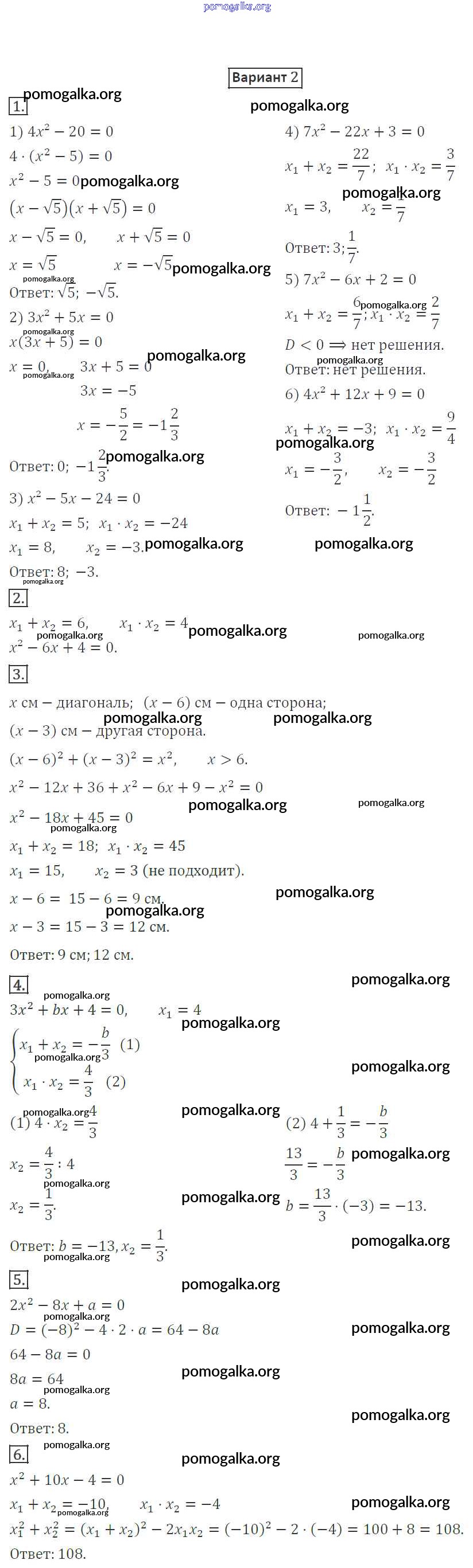 Готовые ответы - Алгебра 8 класс Дидактические материалы Мерзляк А.Г. - кр-5 контрольная работа вариант 2
