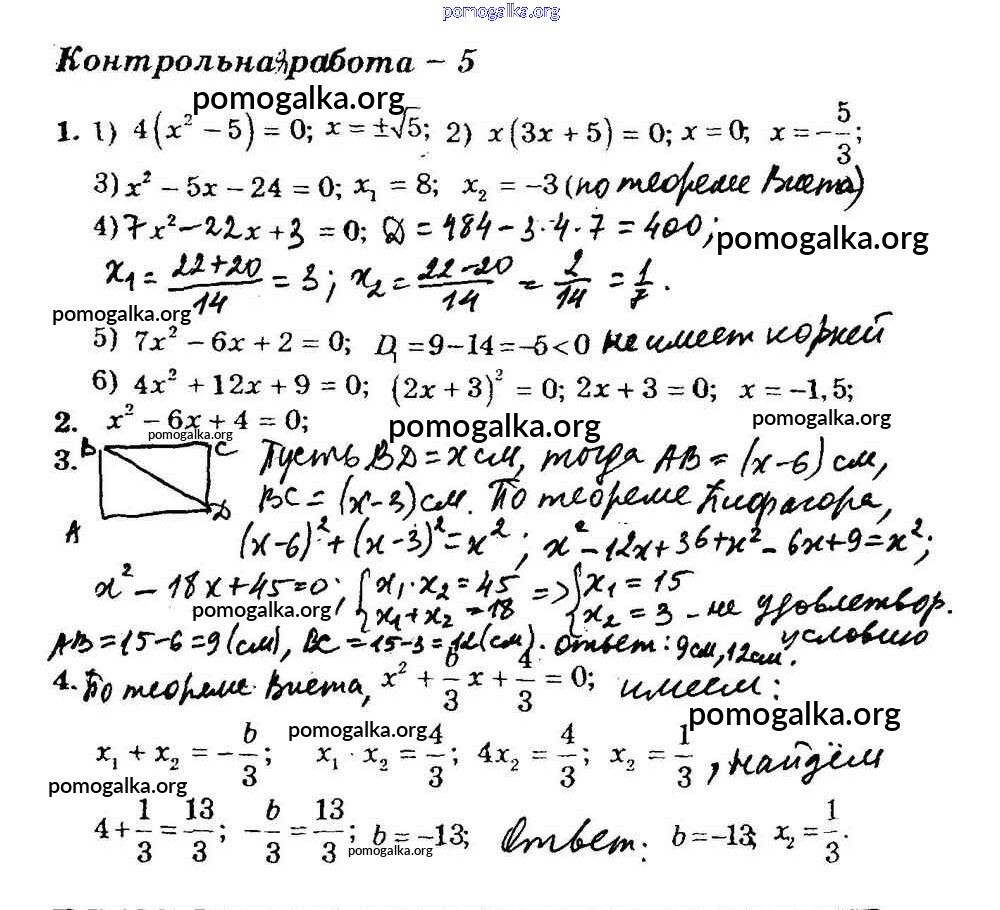 КР-6. Квадратный трехчлен. Решение уравнений, сводящихся к квадратным уравнениям. Решение задач с помощью рациональных уравнений