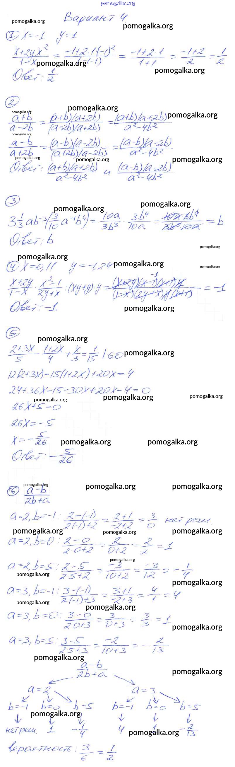 Готовые ответы - Алгебра 8 класс Дидактические материалы Попов М.А. (к уч. Мордковича) - кр-1 контрольная работа вариант-4