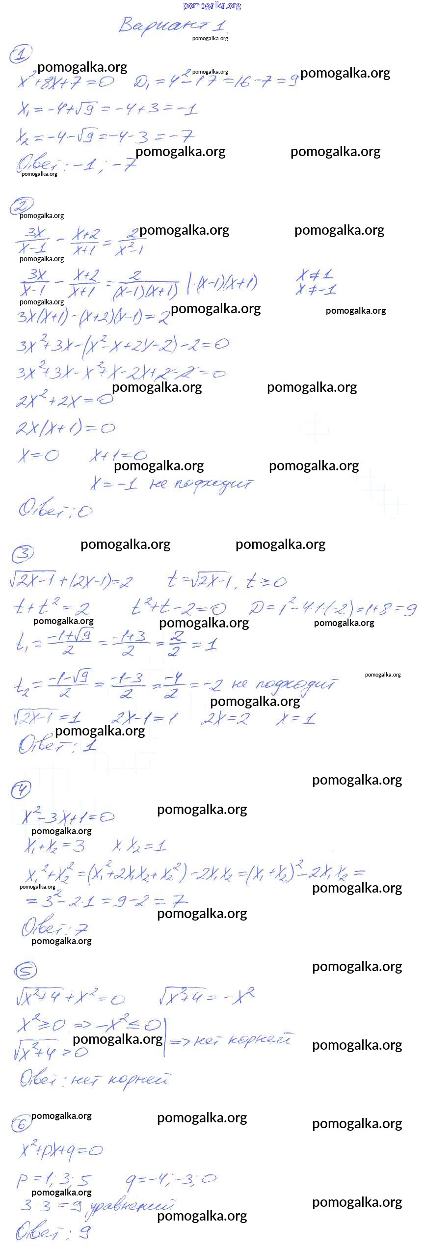 Готовые ответы - Алгебра 8 класс Дидактические материалы Попов М.А. (к уч. Мордковича) - кр-4 контрольная работа вариант-1