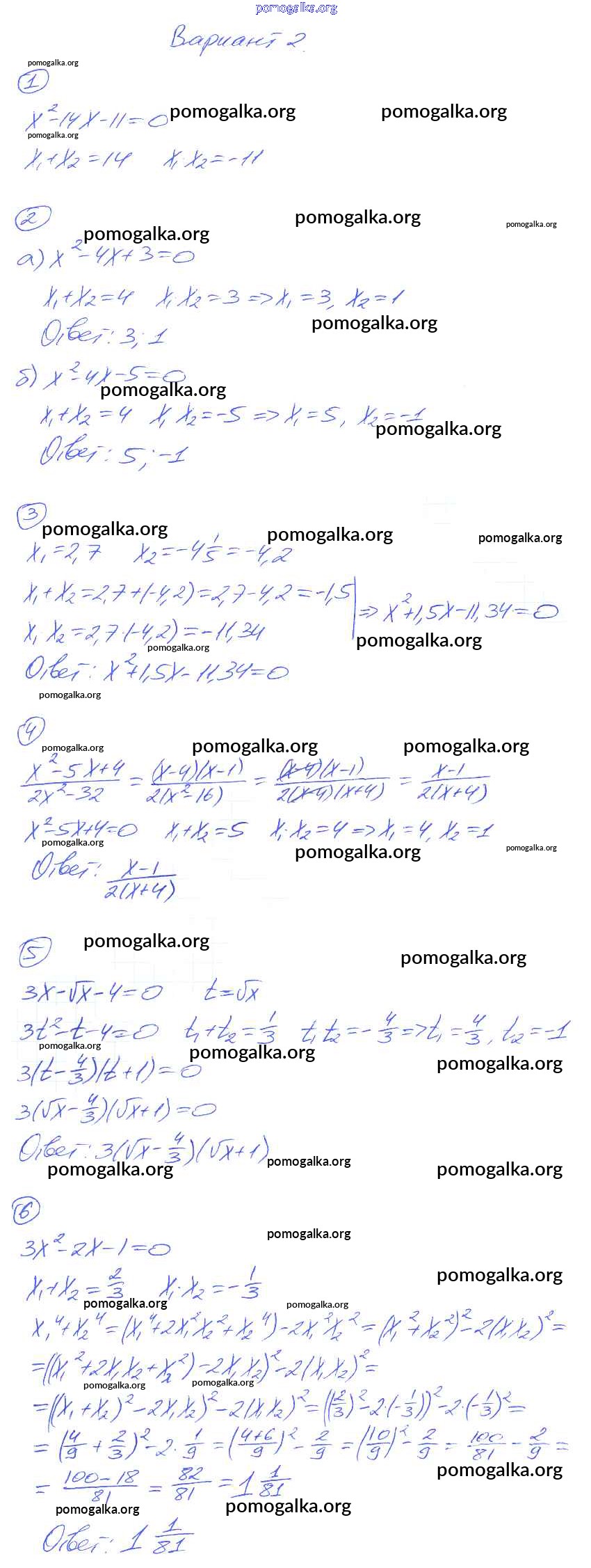 Готовые ответы - Алгебра 8 класс Дидактические материалы Попов М.А. (к уч. Мордковича) - ср-29 самостоятельная работа вариант-2