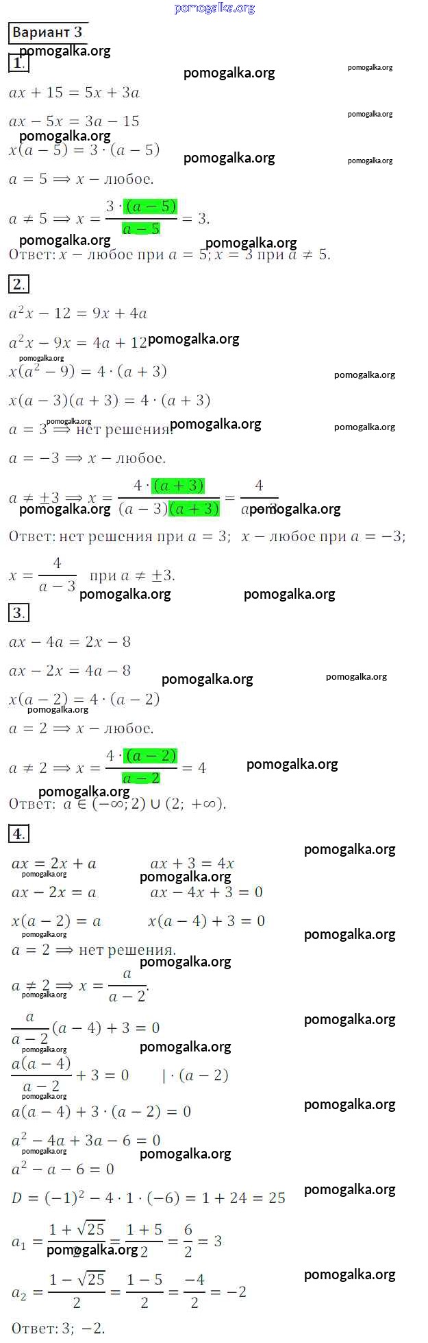 Готовые ответы - Алгебра 8 класс Дидактические материалы Потапов М.К. - ср №12 самостоятельная работа вариант 3