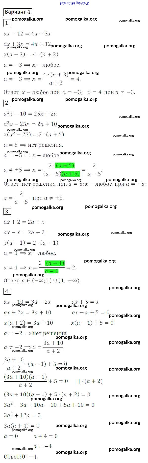 Готовые ответы - Алгебра 8 класс Дидактические материалы Потапов М.К. - ср №12 самостоятельная работа вариант 4