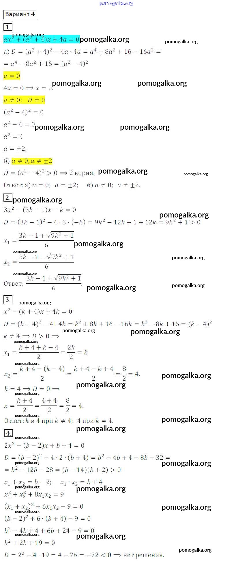 Готовые ответы - Алгебра 8 класс Дидактические материалы Потапов М.К. - ср №13 самостоятельная работа вариант 4