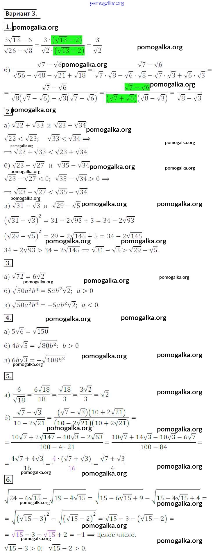 Готовые ответы - Алгебра 8 класс Дидактические материалы Потапов М.К. - ср №4 самостоятельная работа вариант 3