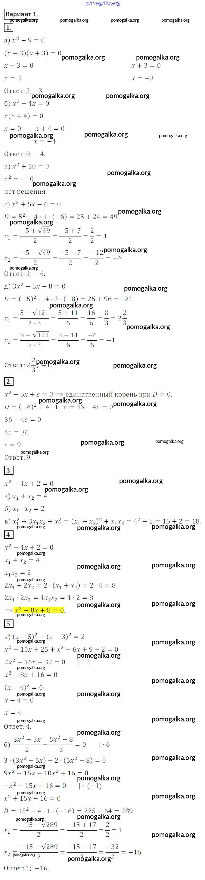 Готовые ответы - Алгебра 8 класс Дидактические материалы Потапов М.К. - ср №6 самостоятельная работа вариант 1