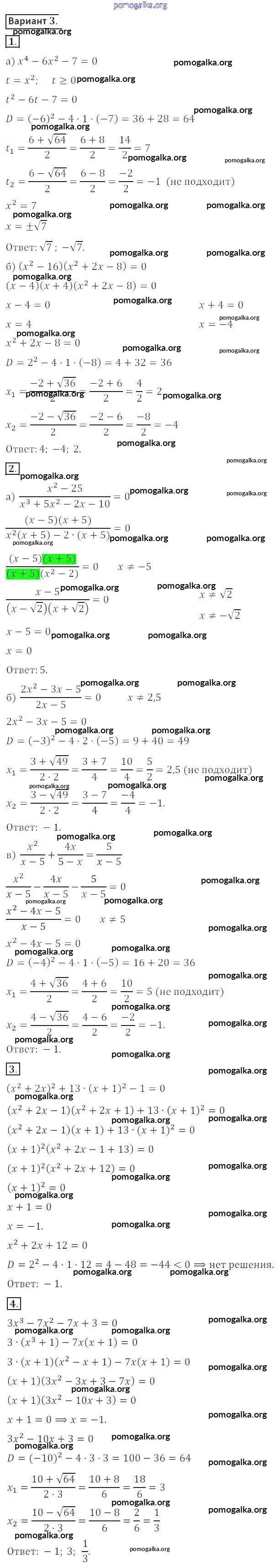Готовые ответы - Алгебра 8 класс Дидактические материалы Потапов М.К. - ср №8 самостоятельная работа вариант 3