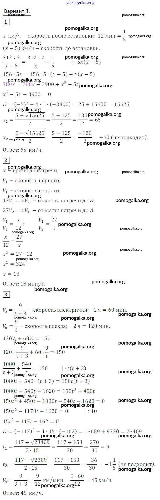 Готовые ответы - Алгебра 8 класс Дидактические материалы Потапов М.К. - ср №9 самостоятельная работа вариант 3